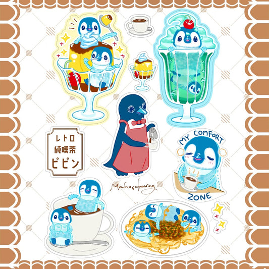 Retro Cafe Pipin A6 Glossy Sticker Sheet